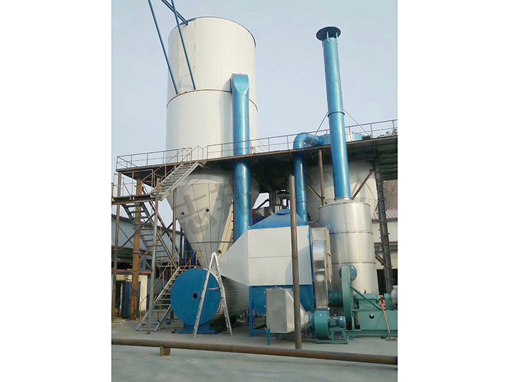 開啟離心風機,然后開啟電加熱,并檢查有否漏氣,如正常可以進行筒身預熱,因熱風預熱決定著干燥設備的蒸發能力,在不影響被干燥物料的質量的前提下,應盡可能提高進風溫度;預熱時,干燥室底部和旋風分離器下料口處閥門要關好,以免冷風進入干燥室,降低預熱效率;當干燥室進口溫度達到目180℃~220℃時,開啟離心噴頭,當噴頭達到指定轉速時,開啟進料泵,加入料液,進料量應由小到大,否則將產生粘壁現象,直到調節到適當量。料液的濃度應根據物料干燥的性質溫度來配制,以保證干燥后成品有良好的流動性;干燥成品的溫度和濕度,取決于排風溫度,在運行過程中,保證排風溫度為一個常數是很重要的,這取決于進料量的大小,進料量調節穩定,出口溫度是不改變的。若料液的含固量和流量發生變化時出口溫度也會出現變動;產品溫度太低,可減少加料量,以提高出口溫度。產品的溫度太高,則反之。對于產品溫度較低的熱敏性物料可增加料量,以降低排風溫度,但產品的濕度將相應提高;干燥后的成品被收集,在塔體下部和旋風分離器下部的授粉器內,在授粉器未經充滿前就應調換,在調換授粉器時,要先將上面的蝶閥關閉方可進行;若干燥的成品具有吸濕性,旋風分離器及其管道,授粉器的部位應用絕熱材料包扎,這樣可以避免干燥成品的吸潮吸濕。