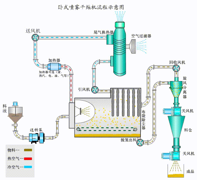 (2)熱源裝置選用蒸汽加熱、電加熱器、熱風(fēng)爐等方式,壓力噴霧分為順流和混合流。